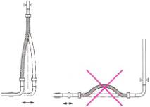 Пример 2. Боковая установка допускается только для компенсации незначительного удлинения. Не допускается выполнять растяжение или сжатие рукава.